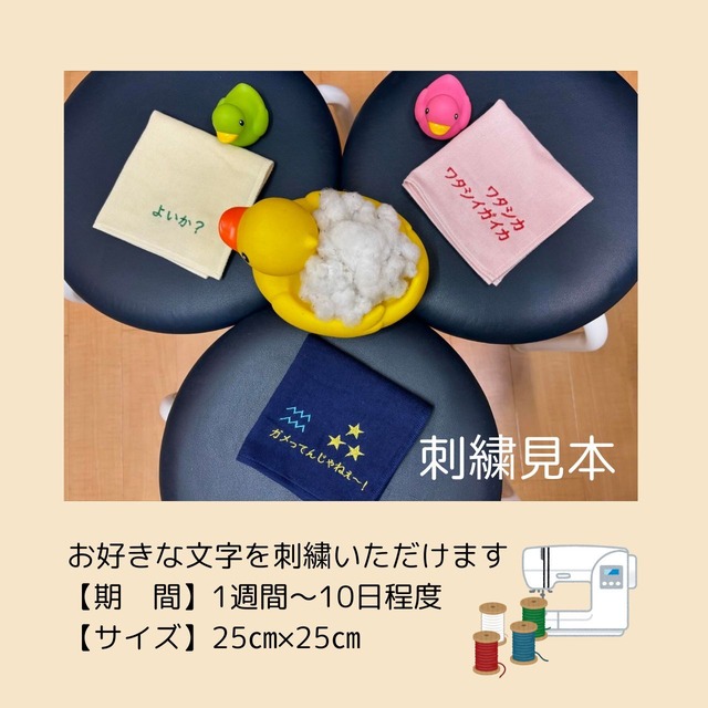 【あなただけの世界にたったひとつの1枚】 いつものお気に入りの1枚に♪ 言葉や座右の銘・四文字熟語など文字の刺繍をお入れします ローマ字・ひらがな・漢字対応
